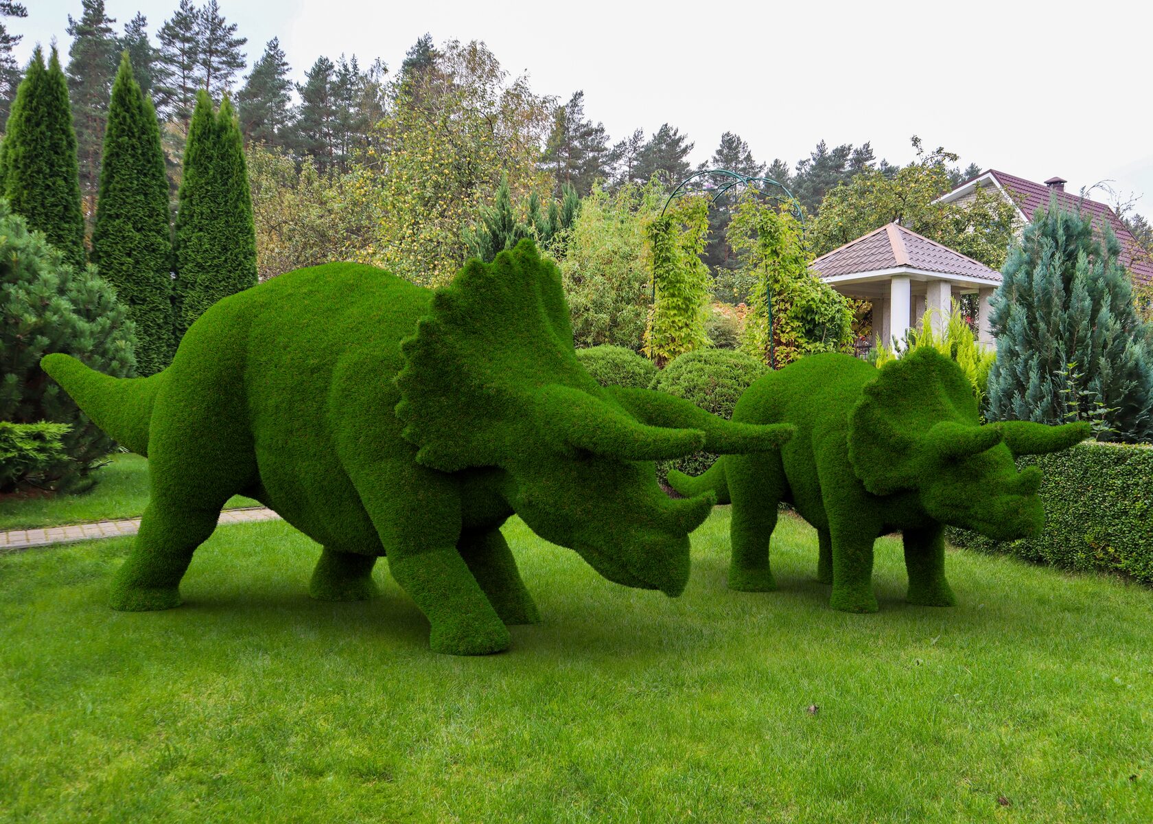 Разместите большого трицератопса на своей территории - это произведет неизгладимое впечатление! Любители динозавров будут в восторге от этой топиарной фигуры трицератопса. Купите эту большую фигуру динозавра трицератопса, и о вас заговорит весь город! Несмотря на свои внушительные размеры, этот динозавр не внушает страха, а вызывает массу восторга! Благодаря этой замечательной фигуре трицератопса вас невозможно будет не заметить!