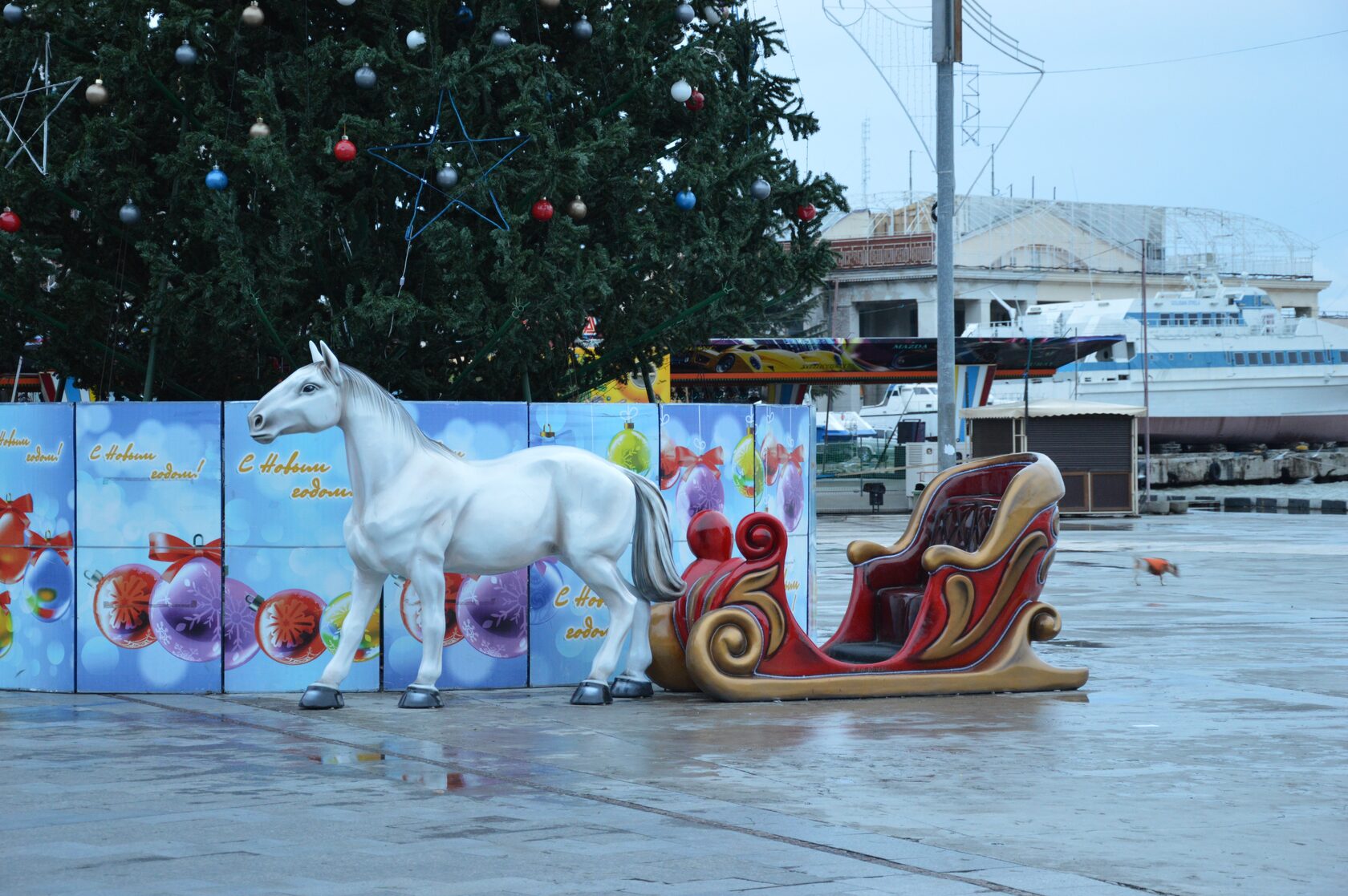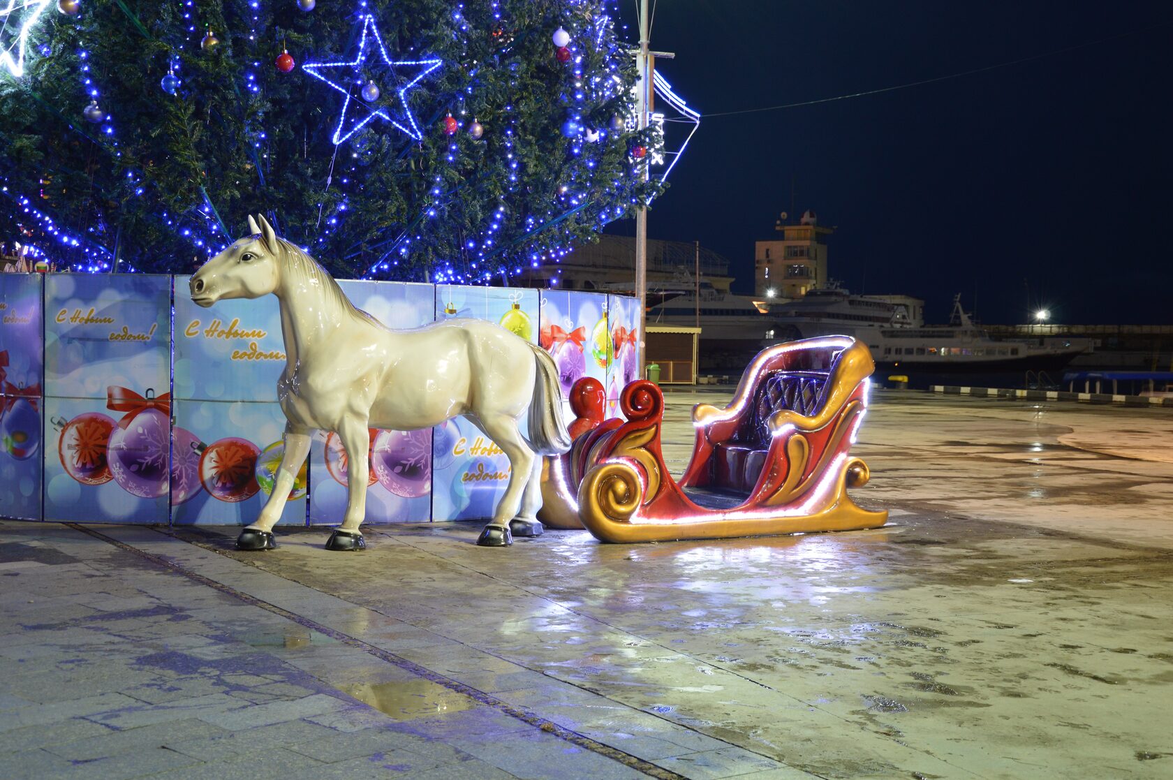 Лошадь с новогодними санями
